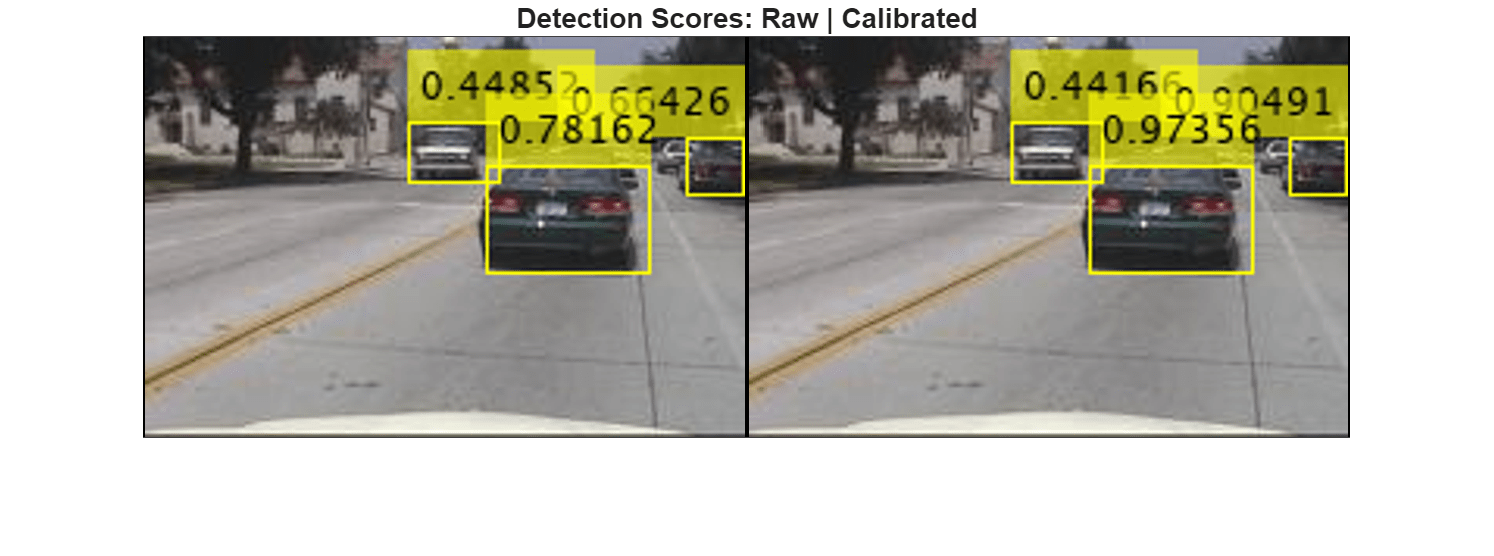 In this example, you apply Platt scaling by using logistic regression to map raw detection scores to calibrated probabilities. Then, you visualize calibrated detection scores for individual images to assess how well the calibrated probabilities align with true detections on a per-image basis. This approach improves the interpretability and reliability of detection outputs.