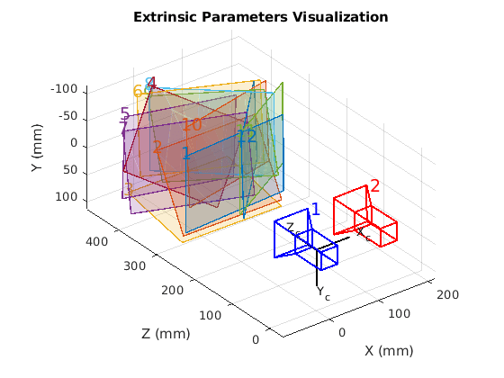% Load the stereoParameters object. load('handshakeStereoParams.mat'); % Visualize camera extrinsics. showExtrinsics(stereoParams); % Convert the object into a struct, which can be passed into generated % code. stereoParamsStruct = toStruct(stereoParams);