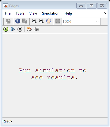 この例では、Computer Vision Toolbox™ を使用してビデオ入力内にあるオブジェクトのエッジを検出します。モデルを実行するときに Edge Detection ブロックをダブルクリックすると、シミュレーションの実行中にしきい値パラメーターを調整できます。しきい値の設定が高いほど、ビデオ ストリームで検出されるエッジの数は少なくなります。