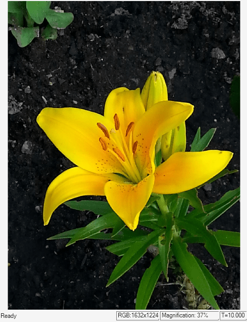 このモデルは、[ファイル名] パラメーターを yellowlily.jpg に設定したImage From Fileブロックを使用して入力イメージを読み取ります。