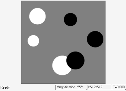 Run the model. The model displays the input image, the binary image, and the output image using Video Viewer blocks. Observe how the output image shows three labeled objects using different shades of gray.