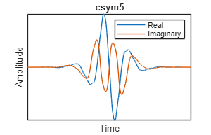 複素 Symlet ( | 複素数値の最小非対称 Daubechies ウェーブレット。特定のサポート幅に対して最大数の消失モーメントがある。スケーリング フィルターはほぼ線形な位相応答をもち、消失モーメント数が奇数の場合は対称、消失モーメント数が偶数の場合は最小非対称である。 |