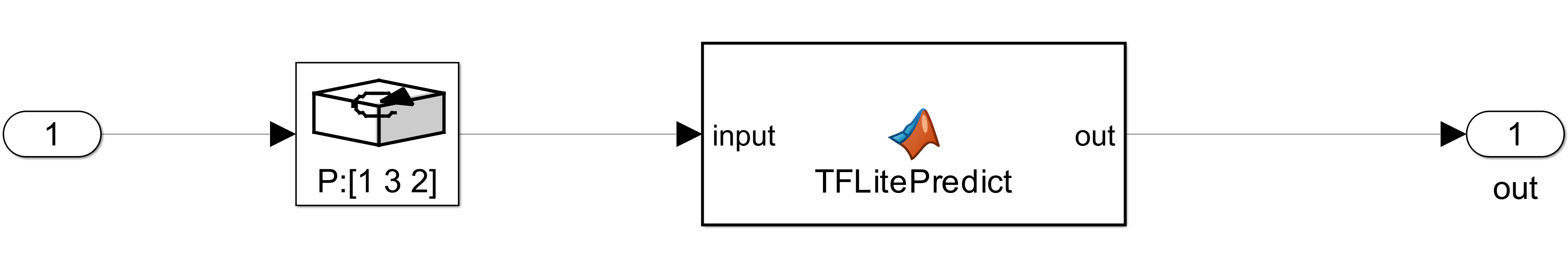 The DNN Processing subsystem has a MATLAB Function (Simulink) block imports the TensorFlow Lite network in to the Simulink Model. To match the input dimension expectation of the TensorFlow Lite model, the Permute Dimensions (Simulink) block changes the dimensions from 329-by-8-by-1 to 329-by-1-by-8.