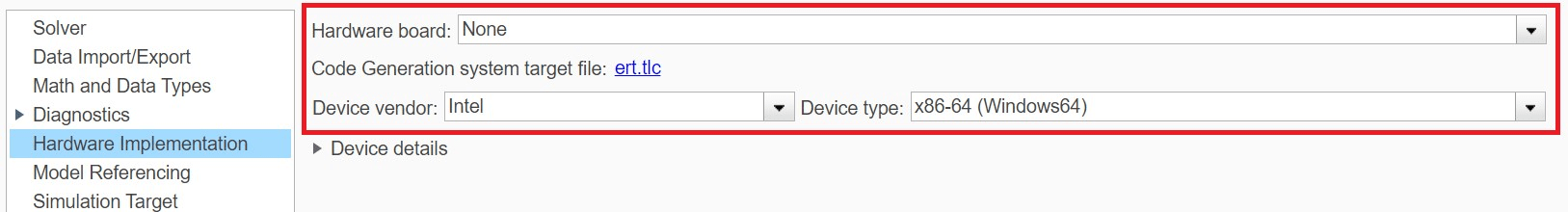 set_param(refMdl,'SystemTargetFile','ert.tlc') set_param(refMdl,'BuildConfiguration','Faster Runs') set_param(refMdl ,'TargetLang','C++')