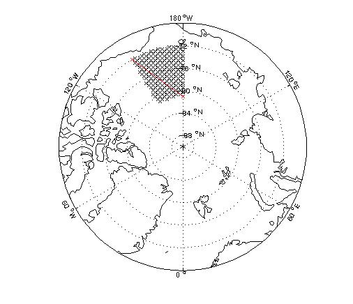 At this point you need to start asking yourself which "line" you are talking about: Great Cicle? Small Circle? Geodesic taking into account the oblateness of the Earth? You appear to be looking up in the Beaufort Sea or the Arctic Ocean, where there might possibly have been significant scraping or depression due to glaciers, so you might need a more detailed shape model. There might perhaps be a Mapping Toolbox tool that is usable for this purpose; I am not familiar enough with that toolbox to say.
