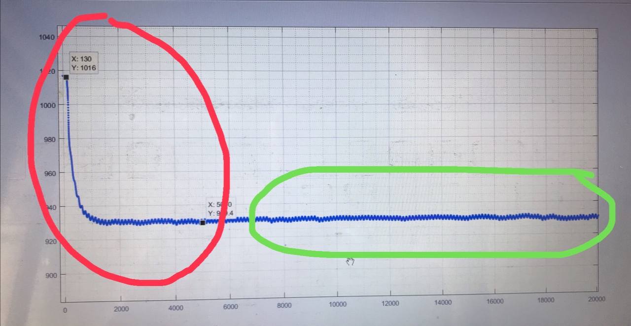 my question, how to determine 130 and 5000? my prof told me that because at the beginning of the measurement, the data was discontinuous (a.png file), so He just deleted that part.